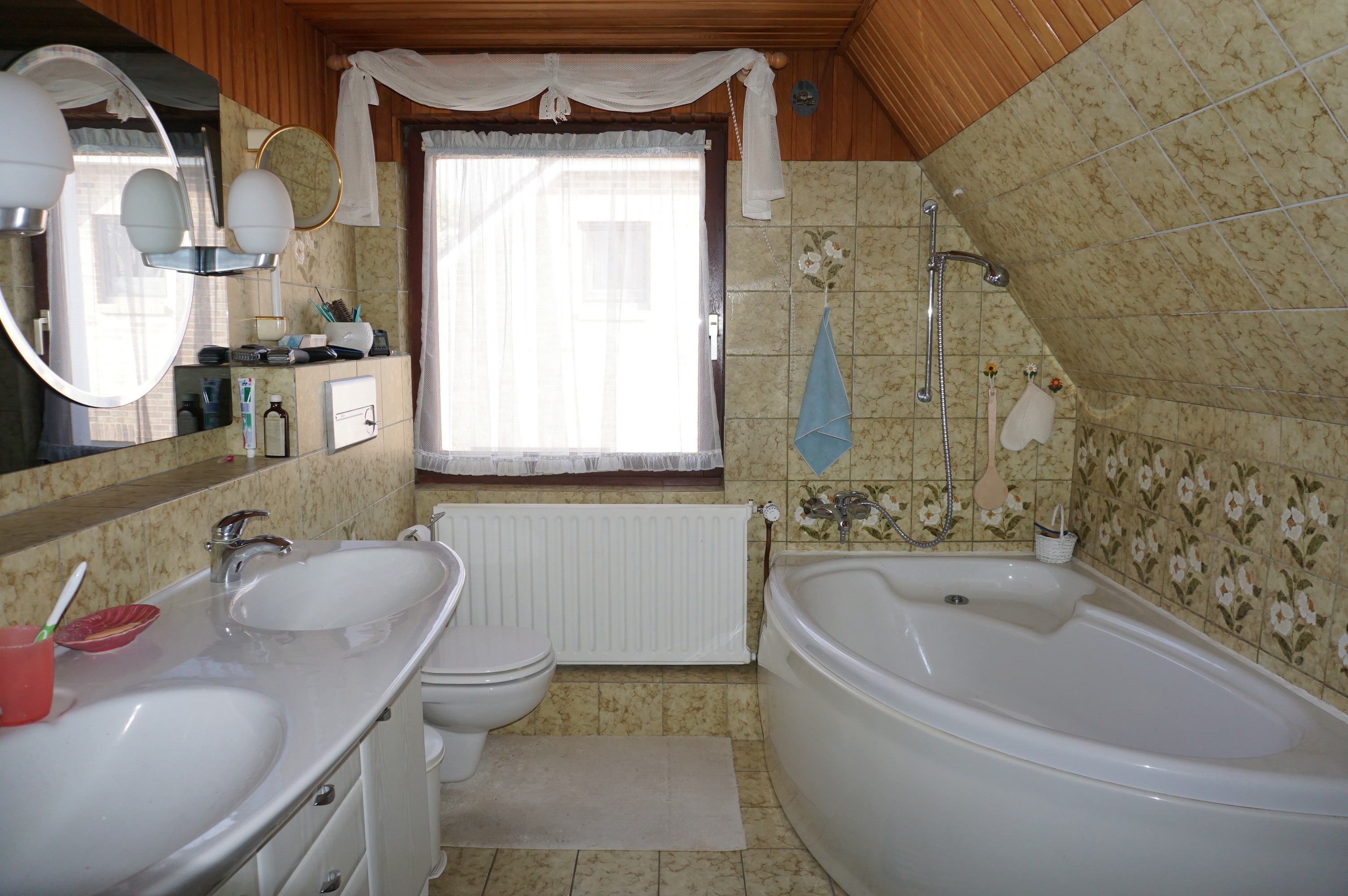 - Ausstattung des Bades Dusche Fenster Badewanne